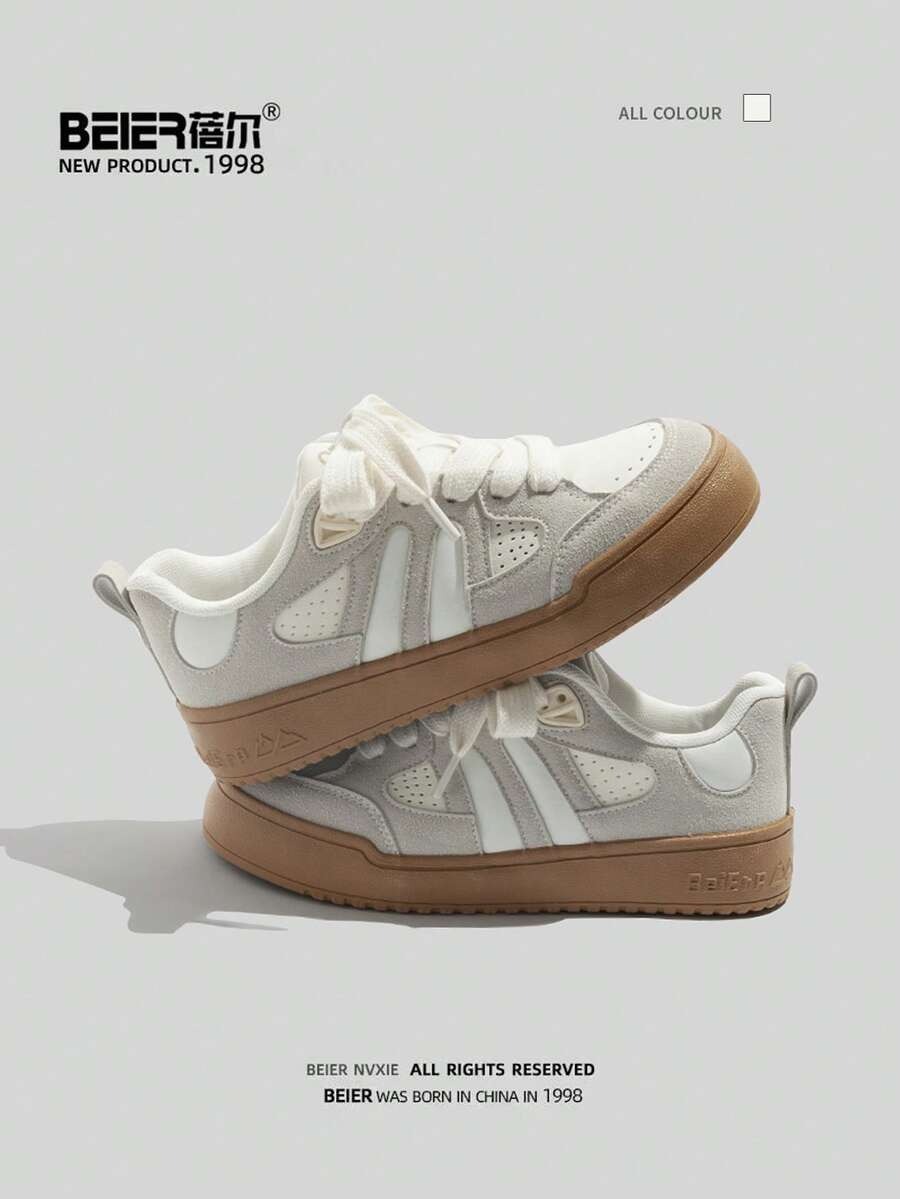 Timeless skate-inspired sneakers featuring a neutral upper and gum sole for everyday wear.