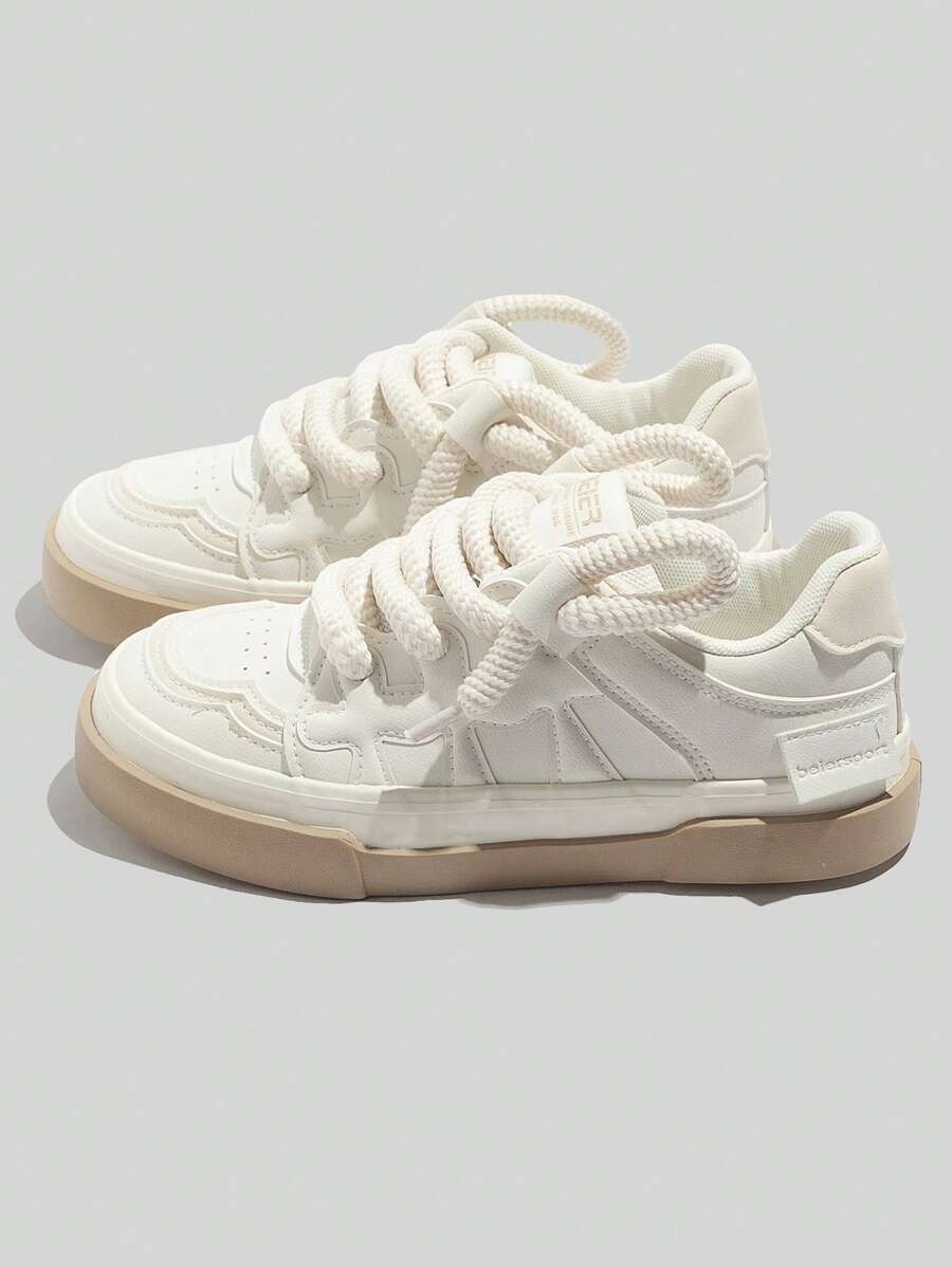 Clean, modern sneakers with a chunky sole and oversized rope laces for a bold everyday look.